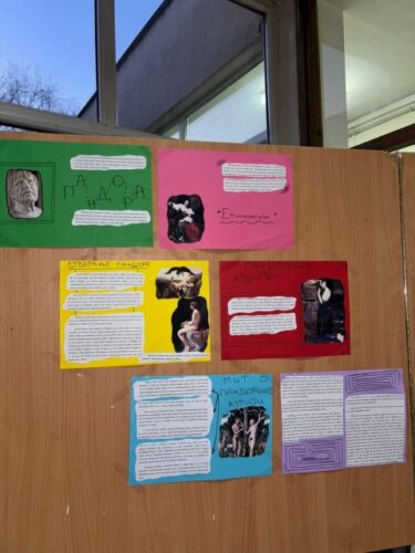 U holu škole organizovana je izložba „Hameri za grčke bogove“, sa biografijama poznatih filozofa.
