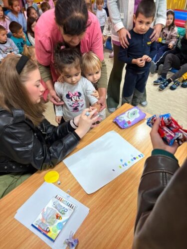 Učenici su posetili vrtić „Pčelica“, gde su se družili sa mališanima, razgovarali o važnosti igre i drugarstva, i tom prilikom im podelili slatkiše. Atmosfera je bila ispunjena osmesima, pesmom i radošću, a srednjoškolci su pokazali koliko je lepo darivati pažnju najmlađima.