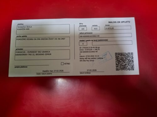 Ko želi, Dejanu može pomoći i slanjem sms poruke ili uplatom novca na žiro račun sa fotografije.