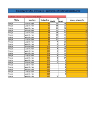 „U Vranju, recimo, živi jedna osoba stara 118 godina, a od 100 do 118 godina ima ukupno 466 osoba. To su poslednji ažurirani, zvanični interni podaci RFZO na dan 6. avgusta 2025. godine. RFZO i dalje tako glasno ćuti, pa ćemo odgovore morati da izvedemo sami,“ izjavio je Petrović.